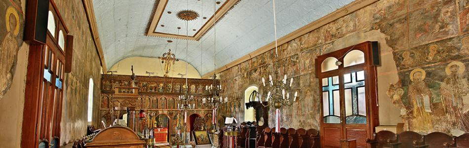 Αξιοπρόσεχτα για τον επισκέπτη είναι το ξύλινο δωδεκάπορτο της εποχής του Εικοσιένα, οι πήλινες εντοιχισμένες στάμνες για την ακουστική του ναού, τα παλαιά πέτρινα μνημεία και ο διώροφος γυναικωνίτης στην πρόσοψη του οποίου παρίσταται η Θεία Κρίση.